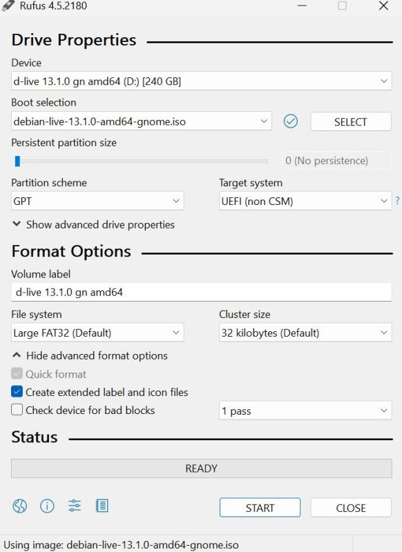 Debian Live iso-t irtam ki egy kulso ssd-re.