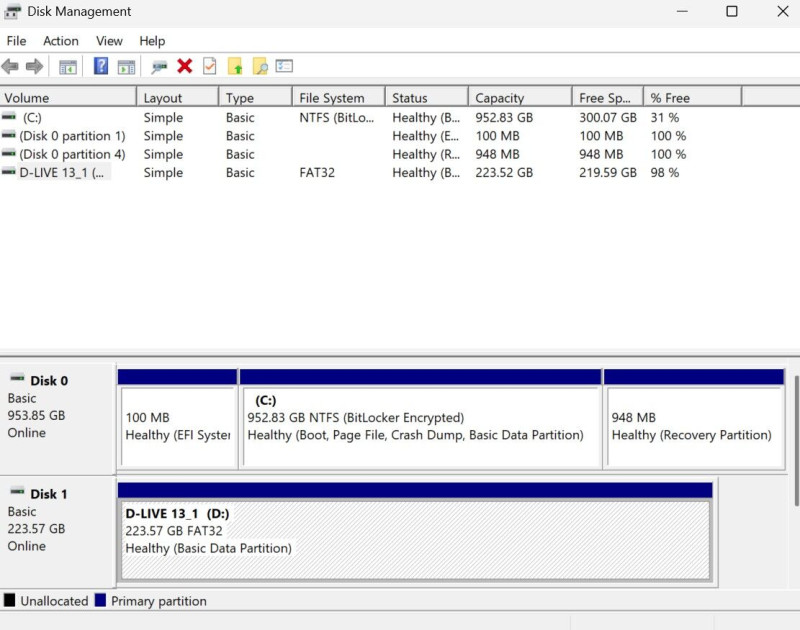 Kozben itt vannak a screenshotok, Rufus beallitasai, majd a Windows lemezkezeloje.
