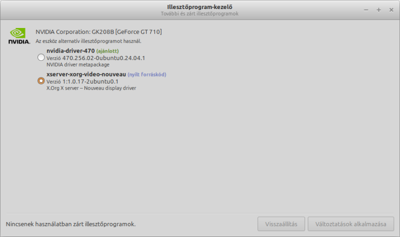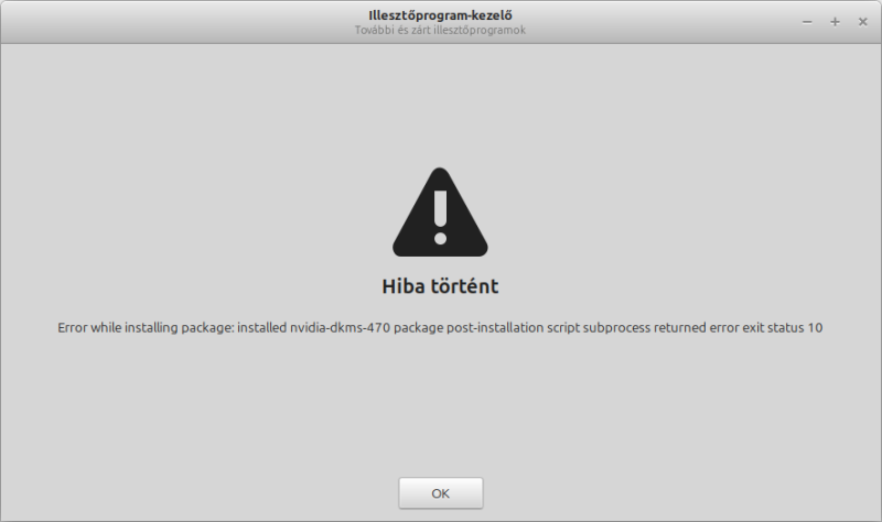 Feltelepítettem a Linux Mint 22.2-t és a zárt nvidia driver telepítéssel gondok akadtak. Az Illesztőprogram kezelő hibára fut, terminálból próbálva ez az eredmény: