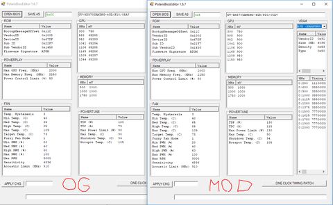 Két csikk egyforma (új) rx580 közül az egyik eleinte hozza a 30 feletti Mh/s-t, a másik pedig onnan indulva lecsorog 10 közelébe, a másik lassan követi. Nagyon nem értek a bios módosításhoz, sok mindent elolvastam este, jelenleg mindkét kártyán ugyanaz a beállítás szerepel. Cseréltem már risert, kábelt, a kártyák helyét az alaplapon, néztem windows alatt is (először hiveOS alatt kezdtem) semmi változás.
