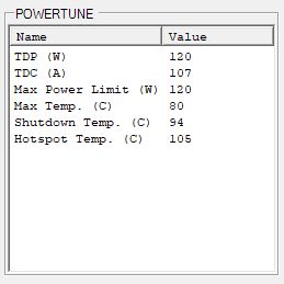 Ez pedig a Sapphire kártyám powertune része. Itt ugye érdekes, hogy az ITX-es kártyán magasabbak az értékek mint a Gigabyte normál méretű Gaming kártyáján.