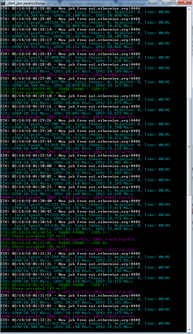 Ez az egész annyira irreális, hogy szavakat nem találok rá. Kíváncsi vagyok, hogy mit mutat majd a pool stat, de ha ott is meglesz a 60 MH/s, akkor az sem fog érdekelni, hogy a 4 kártyából jelenleg csak 3-at lát az rendszer.