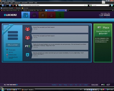 A Lockerz egy meghívásos rendszeren alapuló weboldal. Miután valaki meghívott, exkluzív videókat nézhetsz, király cuccokat vehetsz, új zenéket fedezhetsz fel, játszhatsz, vagy egyszerűen csak barátkozhatsz. És mindezt most egy helyen teheted, sőt még jutalom pontokat is kapsz, csupán azért, hogy azt csinálod, amit szeretsz! Ezeket a pontokat pedig értékes ajándékokra költheted!