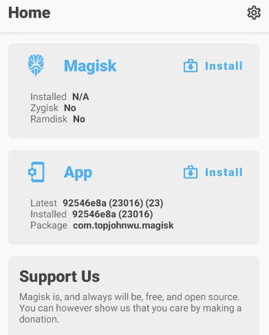 ha a settings-re bökök nem történik semmi, ha a magisk-re, akkor pedig betölti ezt: