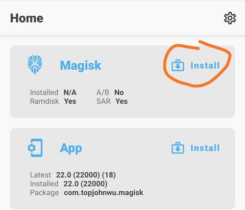 Vagy ha van custom recovery-d, akkor mondjuk a 21.4-ből flasheled az uninstaller-t, restart recovery, és flash-eled az apk-ból zip-re átnevezett Magisk-v22.0-t. -