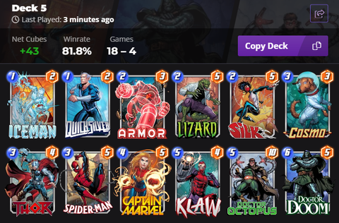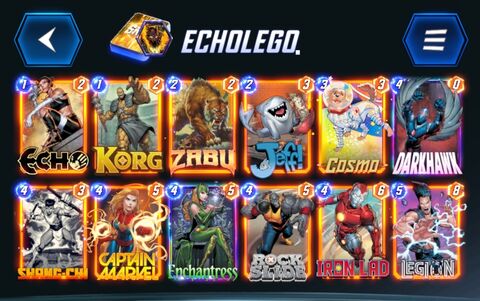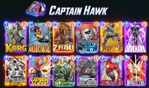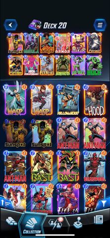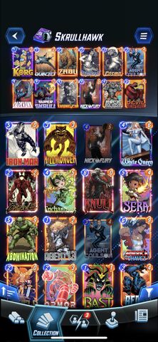 Egy patriot deckel mentem skrullal együtt kellemesen muzsikált sokszorMost egy Magneto kontrollt láttam (captain marvel és vision is benne volt a deckben) (hooglandia mutatta be) elég kellemesen nézett ki, amikor a sok 4 manás lapot elrángatod a helyükről közven visiont oda húzod ahova szeretnéd, marvel pedig meccs végén képes dönteni...