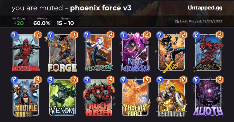 Sajnos ez a Chavez nerf utáni Phoenix Fore deck nagyon inkonzisztens hiába javították a Multiple Man bugot.