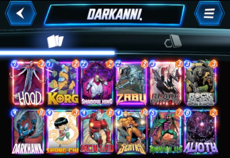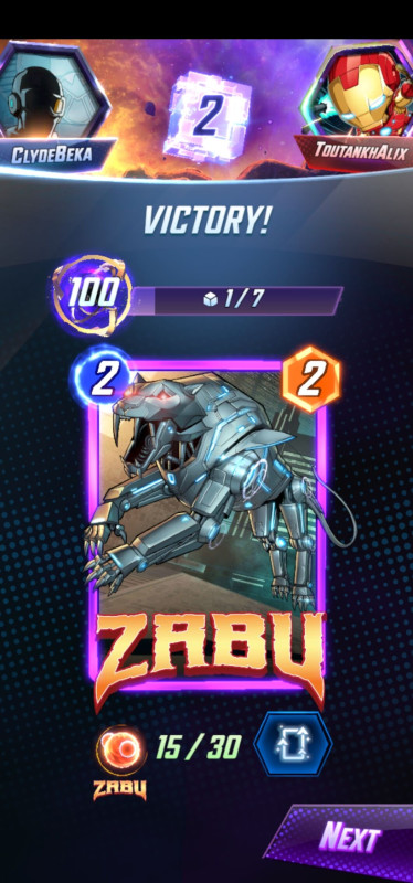 Nagyon undorító ellene játszani de egyébként Hawk és Thanos ellen nyertem mert addigra már annyira vezettem, hogy nem számított a 6. kör, nekik meg iszonyat gyenge stat volt az 5 energia/3 power.