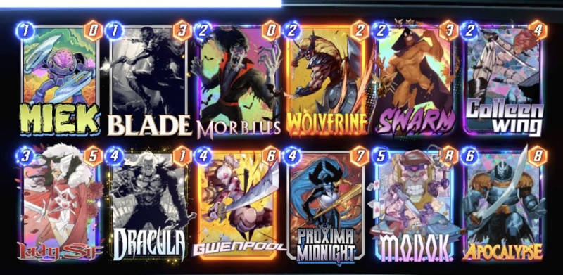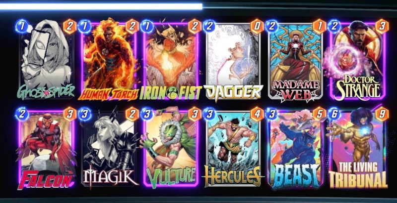Szerintem egy baromi jó lap, de ahogy néztem csak Loki-ban terjedt el..Vision-t lecseréltem közben Killmonger-re, egész sok Zoo/Thanos/Bounce jön szembe.