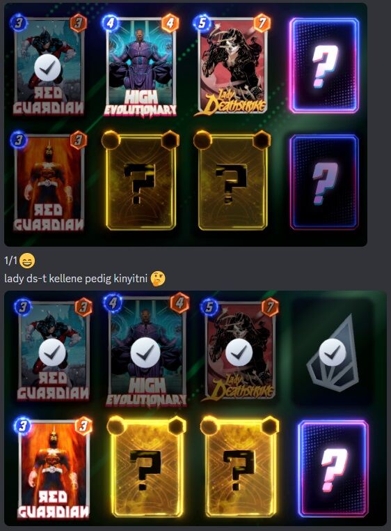 Picit off-topic, reddit-en futottam bele egy Marvel Snap alapú Wordle játékba, napi egy feladvány, egész mókás. A mai feladvánnyal elszöszöltem utolsó lehetőségig.