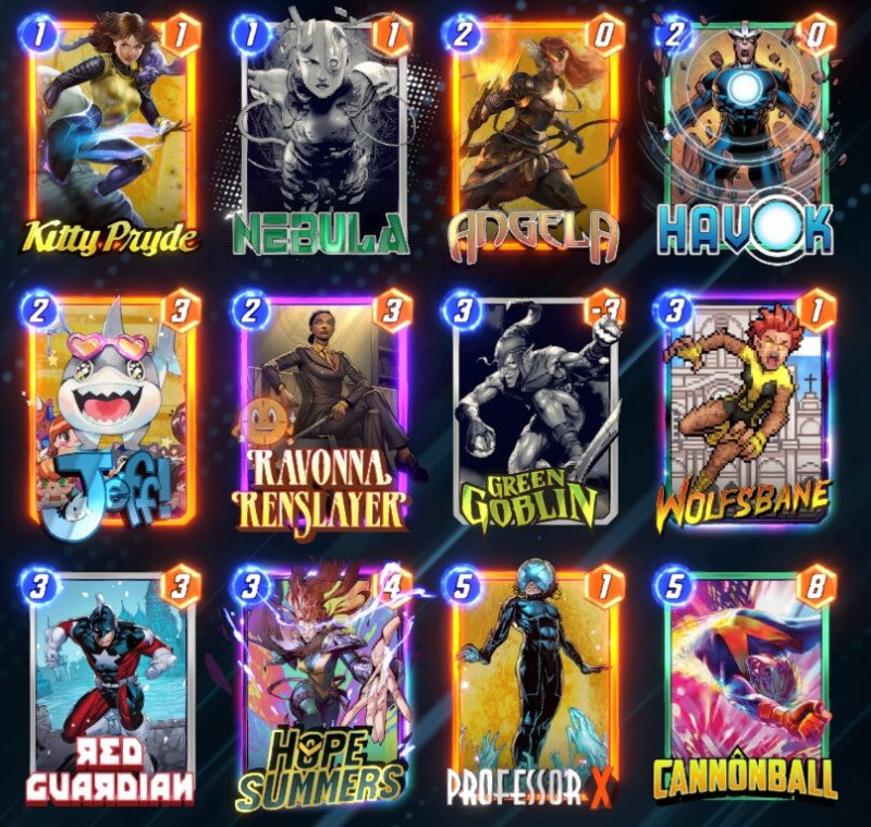Hope és Ravonna nagyon kell mellé, 1 cost T4-ben és T6-ra 12 pwr lesz meccs végén, így Shang nem fog rajta. Hope meg szinte észrevétlenné teszi Havok negatív hatását.
