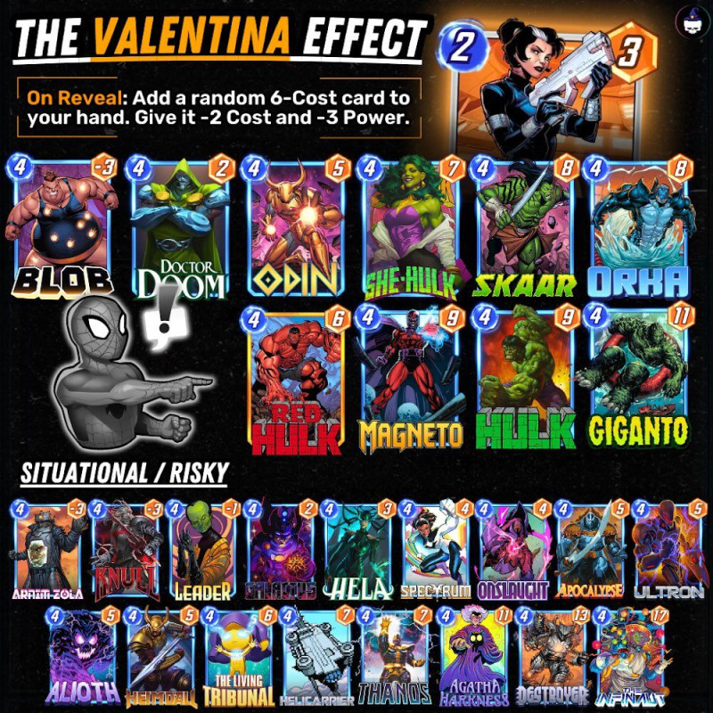 Valentina helyett inkább Cable-t használom. Imádom mikor elveszi Hela-t vagy pl. Tribunal-t és mikor még így sem állok nyerésre kirakom T5-ben Helát, hogy lelkileg megtörjem az ellent.