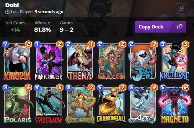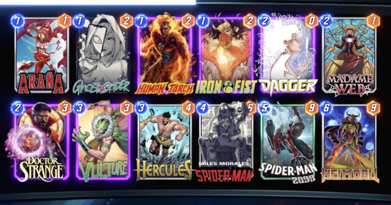 YoWoody paklijánál szerintem nagyobb a random faktor, mert Spider-Man, Silk, Bob mind keresztbe tehet.Dekkster változatánál T6-ra szépen át lehet variálni a pwr elosztást. Ha már lent van Captain Marvel, akkor a Kraven+Ms. Marvel kombóra senki nem számít. Nekem bejön nagyon, feljöttem vele top600-ba.