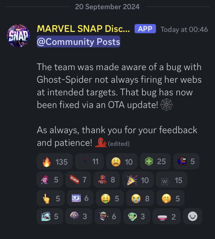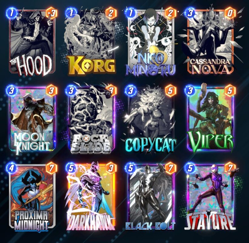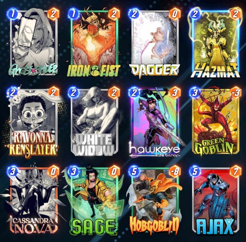 Ha már új lapok, akkor ez a hónap szerintem az elmúlt időszakból az egyik legerősebb. Silver Sable valószínűleg staple lesz bounce-ban, egy jobb Rocket, 1/5 stat, ami később csak nőhet. Madame Web zseniális lap move-hoz, így már SM 2099 sem lesz körülményes. Arana szintén.. Scarlet Spider-t meg csak buffolni kell. Nekem bejön a szeptember így elsőre.