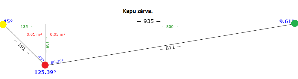 És mint látható, a piros szög 125-ről 20-ra változik, tehát a nyitás mértéke 105 fok.