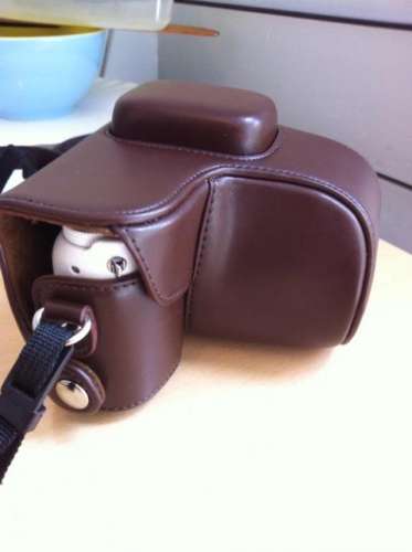 ámde meglepően jó műbőr. Belül sötétbarna bársony, tehát puha, nem karcol nem sért. Az alja teljesen zárt,és sajnos nem sima, tehát kőre nem tudom letenni mert bukik előre, viszont a menetes csavarnak az alján is hagytak menetet, tehát akár állványra is szerelhető. Nem lehet sem az akksihoz sem a karihoz hozzáférni, de én spec nem szeretem a kártyát ki / be rakni, inkább kábelezek. Kár, hogy nem tölti kábelről az akksit is, mint régen, akkor isten lenne ez a tok.ITT találsz képeket a hírdetésen belül.