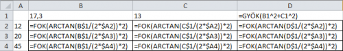 képlettel számolok (egy egyenlő szárú háromszögnek fogom fel, amelynek magassága a fókusztáv, alapja a szenzorméret, ezt a magasságánál felezem, kapok egy derékszögű háromszöget, amelynek fél szenzorméret a szöggel szemközti, fókusztáv szög melletti befogója, az arcus tangenssel kapott szög a keresett szög fele, ezért a végén a duplázás).