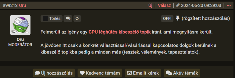 Felmerült az igény egy CPU léghűtés kibeszélő topik iránt, ami megnyitásra került.