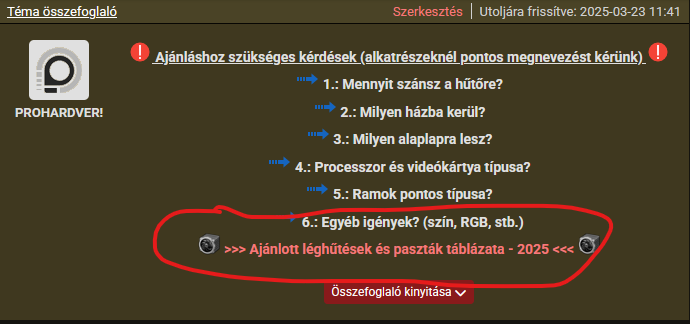 >>> Ajánlott léghűtések és paszták táblázata - 2025 <<<