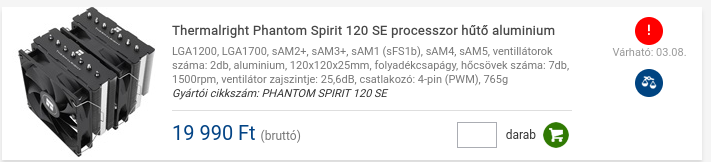 Thermalright PS120SE ARGB - 50 eurItthonról Deepcool AG620 20+futár.