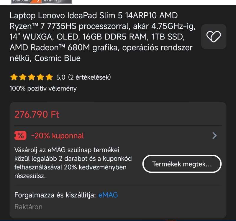 200e Ft alatt renderelésre alkalmas új laptop nincs, illetve csak kompromisszumokkal: Nem fér bele sem a windows telepítése, sem az 1000GB tárhely, sem egy tisztességes színtérlefedettségű kijelző, sem egy dedikált videokártya. Ezen az áron a 7535HS processzor érheő el, alkalmanként, hobbi szinten végzett rövid videók szerkesztésére: