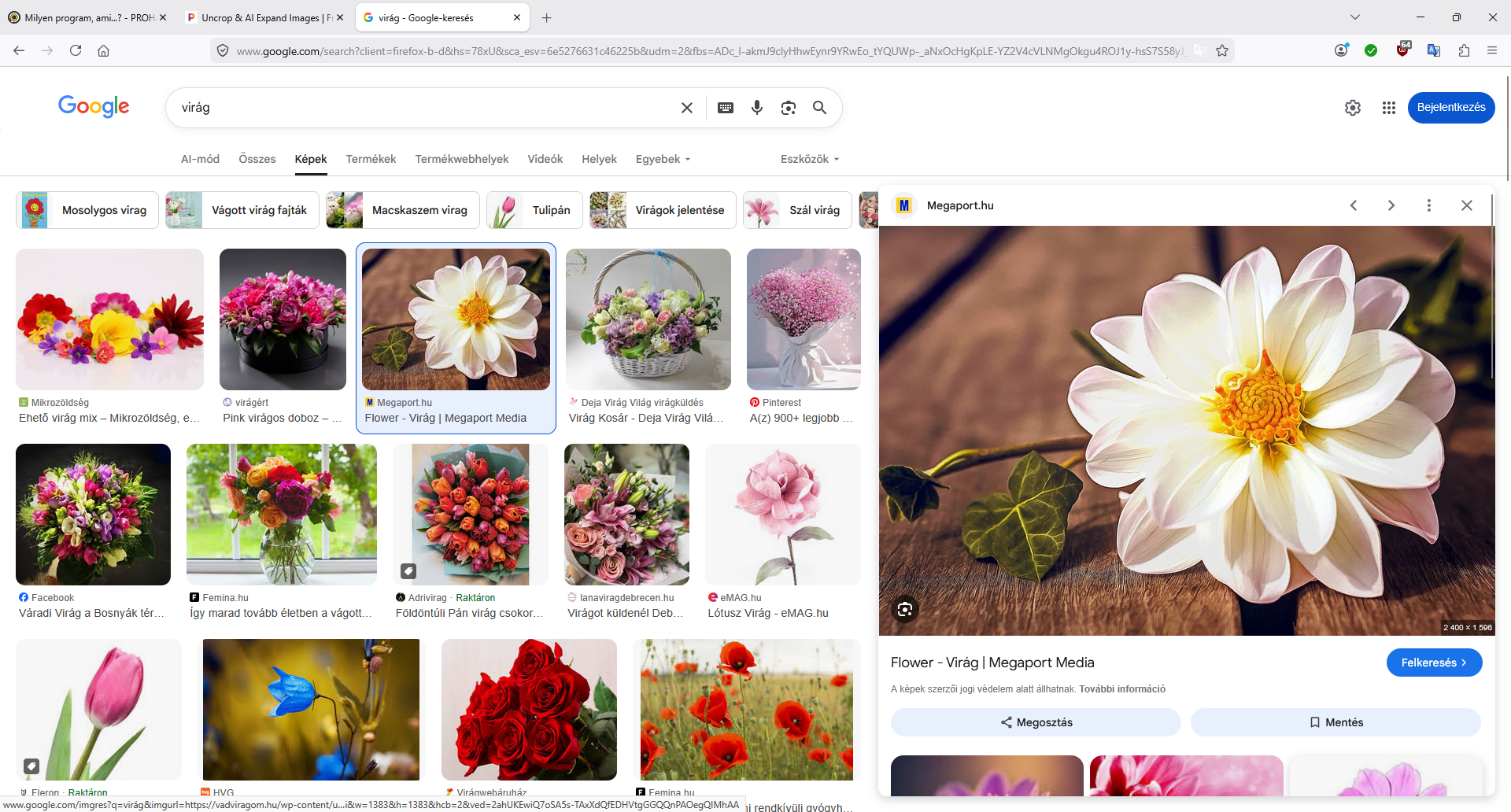 Mingyá' mutatom nem GIMP-l... ASAP.1. Találomra rákeresünk - ez esetben - a "virág" szóra
