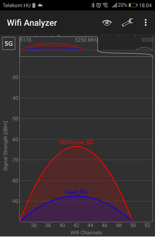 Például a beállításokban a 100-as csatornára van állítva az 5GHz-es wifi, de mobilon Wifi Analyzer app-pal leellenőrizve valójában a 40-es csatornán van. Aztán van, hogy eltűnik az 5GHz-es wifi csak a 2GHz-es látszik 2-5 percig, majd valami random csatornán ismét feléled.