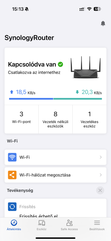 nem kell most egyszerre két eszköz (mesh), de 1 jó router minimum kell, a Telekom router után. Annak a wifijét le akarom tiltani, arról kábellel csak a két tv menne, meg abból egy kábel az új routerbe és az új routerrel oldanám meg a wifit.