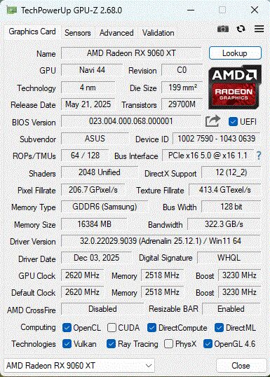 ASUS DUAL Radeon RX 9060 XT 16G Többen is vettek ilyen kártyát, megmondanátok, hogy samsung, vagy hynix ramok vannak rajtuk.