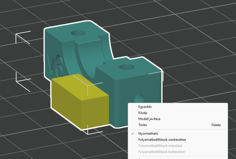 Betöltöd az objektumot amit szeretnél kinyomtatni. Betöltöd az objektumot amit szeretnél negatívként használni. Kijelölöd mindkettőt és merge. Aztán az objektumok közt a a negatívként használni kívánt testnél jobb klikk, change type, negative.