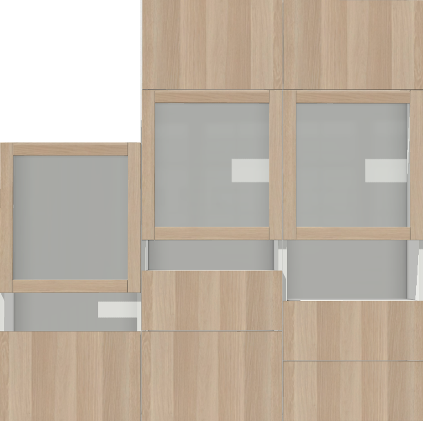 Itt vannak a variációk amúgy amiken vacilálok. Ezek Platsa vázak Bestára való Lappviken előlapokkal de minimális fúrással minden gond nélkül felapplikálhatóak. A Besta zsanéroknak kicsit más a furatelhelyezése (és az előlapok magassága is más) de gyakorlatilag annyi a történet, hogy zsanéronként 2 extra furat a vázba és hasonlóképp az alsó fiókoknál ha Platsa fiók akkor 2-2 extra furat az előlapba, ha pedig Besta fiók akkor a 2-2 extra furat a vázba megy.