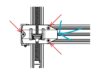 meghúztam a kék nyíllal jelölt csavart mindkét oldalon (utána próbáltam a pirosakat meglazítani, azt írja a manual-ban, hogy "Loosen the 6 screws holding the carriages on both sides then tighten them ONLY when wheels on Z carriages not properly seating on the aluminum extrusions.", de konkrétan beletört az imbusz kulcsom)