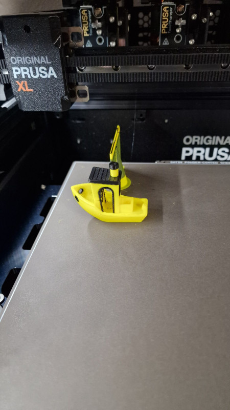 Érdemesebb lett volna jobban átolvasni az egészet egyszer, a kommentekkel együtt, de reggeles műszak után már nem úgy forognak a kerekek.Nyomtatásnál az első tapasztalat, ami nem látszott a képen, hogy a fejek irányában azért volt szálazás. Ez lehet a filament gondja is akár, hiszen arra volt a törlőtorony. De lehet a modell baja is. Gondolok itt arra, hogy a fekete szál konkrétan kiállt a benchy sárga vázából. Vagyis a fej elvitelekor húzott egyet jól láthatót.