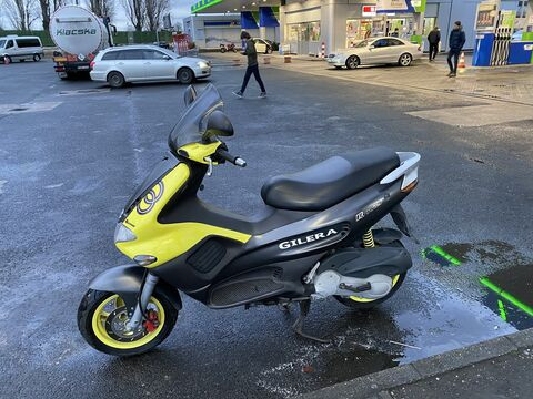 De a lényeg, elhoztam a másikat. Egy 2003-as, utolsó legújabb szériás, Moto Italia-nál vásárolt, első tulajos Gilera Runner Fx 125. A motor makulátlan, szerintem egy igazi gyöngyszem! Magyarországon vásárolt, megvan az eredeti Moto italia-s számlája is! A motorja gyönyörűen jár, de viszont egy kicsit lustábban gyorsul mint ez a régebbi gép amit most hozott vissza a szerelő. Pedig elvileg ugyan az a 125-ös 2T blokk van mindkettőben. Amint hozta a szerelő a régit, oda is adtam neki az újat, nézze meg ezt is. Egyedüli esztétikai hibája a repedt tükrök, ezeket cseréltetem.