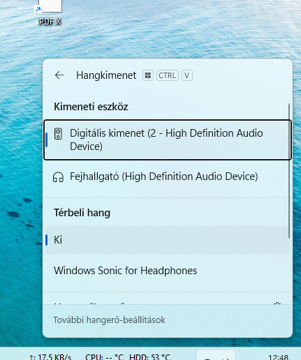 Mostanában viszont néha a HDMI hangkimenet "eltűnik", nem lehet a hangot a HDMI kimeneten keresztül kiküldeni, csak a fejhallgató kimenet él: