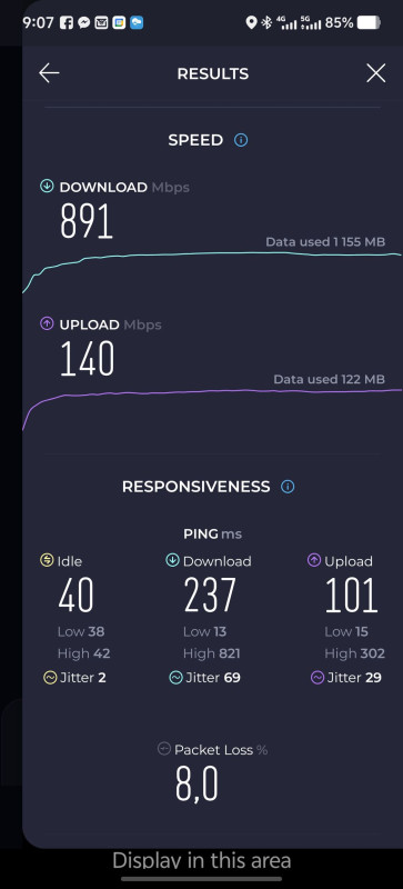 One topicban nyáron Zamárdi 1400Mbitet Ugyanúgy Samsung A55 el, úgyhogy nem gondolom hogy a telefon a szűk keresztmetszet.Yettelel 500Mbit körül volt a max amit mértem.