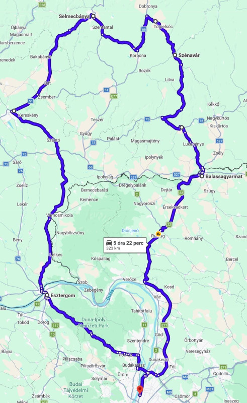 [Bp-Ballasagyarmat-Szénavár-Selmecbánya-Léva-Esztergom-Bp].