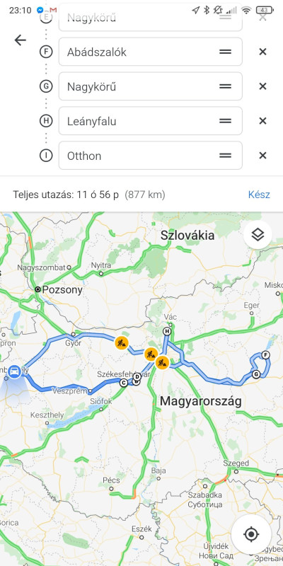 Elvitt a gps valami hülye földútra. Azt mondta 53 km 59 perc. 2.5 óra lett belőle. Olyan országutak jöttek mikor visszafordultunk, hogy öröm volt nézni. Szerencsére csak két nyúl futott ki az útra, de volt negyed 11 mire hazaértünk...Ezek után marad a Waze tényleg....
