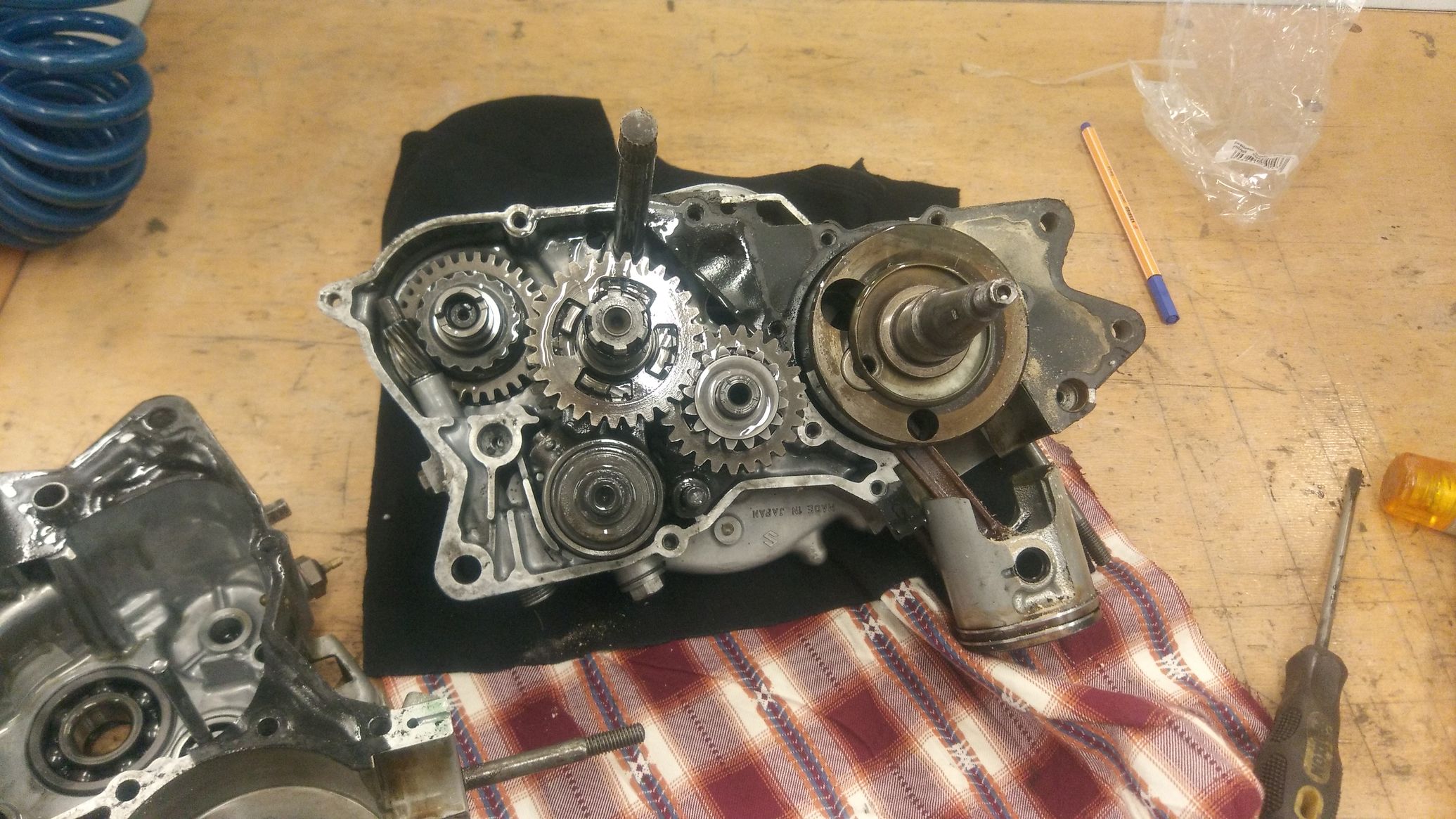 az öntvényben nem fordult meg a csapágy. Kiszedtem a csapágyakat. Megmelegítettem a fészket és után könnyen ki tudtam ütni. Egyik csapágy rossz. Az egy standard csapágy a másik a meg spéci csapágy nem lehet europába kapni amcsiba van. Van rajta egy szoknya lemez ami a 2T olajat a főtengely hajtókar csapágyához tereli a 2T-s olajat. Egyébként ez jó viszont ez fordult meg a főtengelyen.Most vennem kell egy pótalkatrész katalógust, mert a suzukiban semmit sem tudnak erről a motorról.