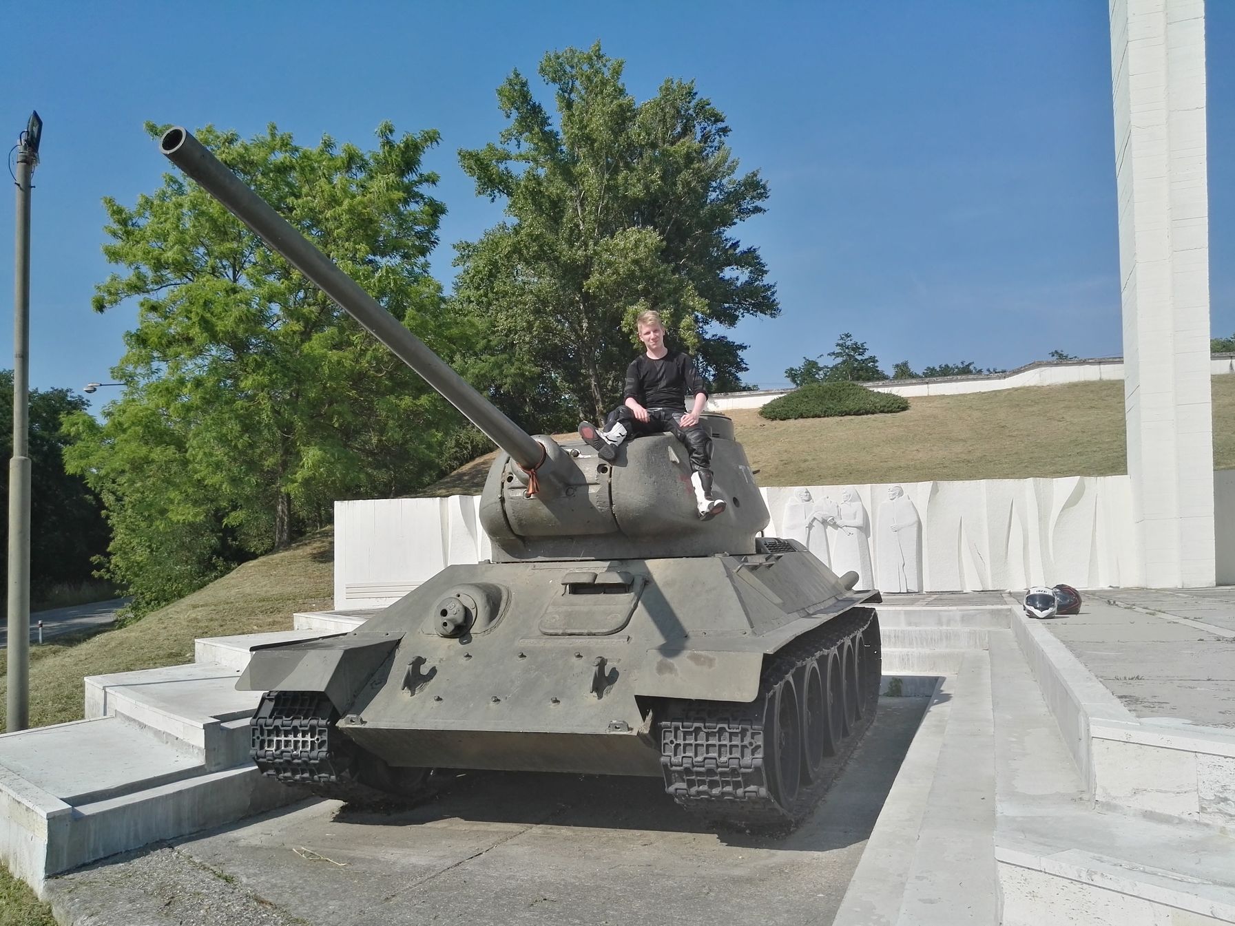 Nem tudom, hogy őrzik mint őrzik elvileg múzeumnak a része, de találtunk magányos T34-es csak szimplán kibelezve, lehegesztett nyílásokkal kiállítva a határtól nem messze.
