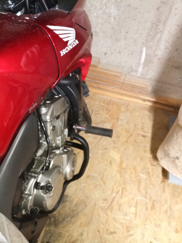 A régi motorom kormányára lett ráhúzva egy Simson lábtartógumi. Nekem le van fenekelve a kormányon a végsúly rögzítő furat és abba van menet, csak egy távtartó lemez keltett hozzá.