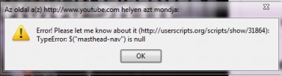 Az egyik Greasemonkey scripted, amit a Youtubehoz használsz, vmiért bugzik. Konkrétan a Youtube HD Ultimate. Ennek több oka is lehet, egyelőre kapcsold ki.