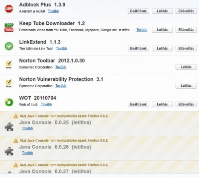 Mi lehet a probléma? Arra a kiegészítőre mindenképpen szükségem lenne, de ezek szerint valami ütközés van (6.0.2-es firefox van fent.)..