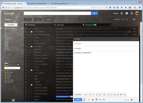 A gmailben még tragikusabb a helyzet. Minden brutál apró betűs, kivéve ha új levelet írok. Az új levél ablak tökéletes méretű.
