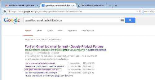 Pl: googléban simán rákeresve valamire kijönnek a találatok, alattuk egy 2 soros betekintő szöveg a weblap tartalmába. A találatok kék főcim betűje tökéletes méretű, de alattuk a kis betekintő sorok nagyon aprók.
