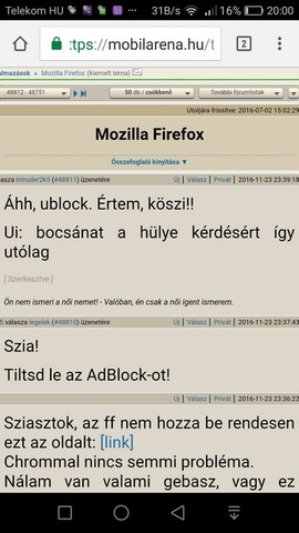 De sajnos ma még rosszabb lett a helyzet. Ugyanis az tűnt fel, hogy ha olyan lapot nyitok meg amelyiken mondjuk egy Facebookról beágyazott videó van 20/20 összeomlik.
