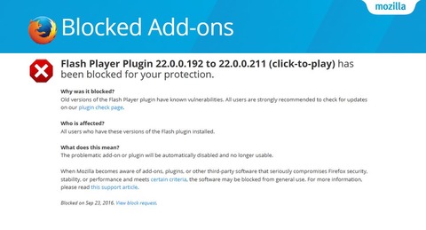 Nem vagyok egy szaki, nem is nagyon értem, mi a fene gond van ezekkel a kiegészítőkkel. Hiába futtatom le a flash player frissítését, utána ugyanúgy azt írja, hogy frissíteni kell. Meg a kiegészítők listájában ott van a 23-as és a 22-es verzió is, utóbbi persze piros felkiáltójellel. Ha ott kattintok rá a frissítésre, akkor meg ezt dobja be:
