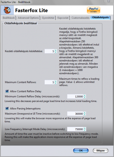 Milyen értékeket kell berakni FasteFoxban? Elég sok van.