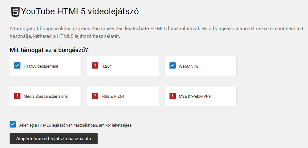 Random kattintva van olyan video ahol kiírja hogy a "kért video lejátszásához flash player kell" de amin tesztelek ott nem, az mp4. -