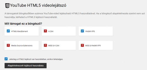 A youtube (ezektől függetlenül, letiltás előtt is) html 5-ben 360p alatt is szaggat, a minősége gyatra, illetve semelyik videonál nem lehet nagyobb felbontást kiválasztani.